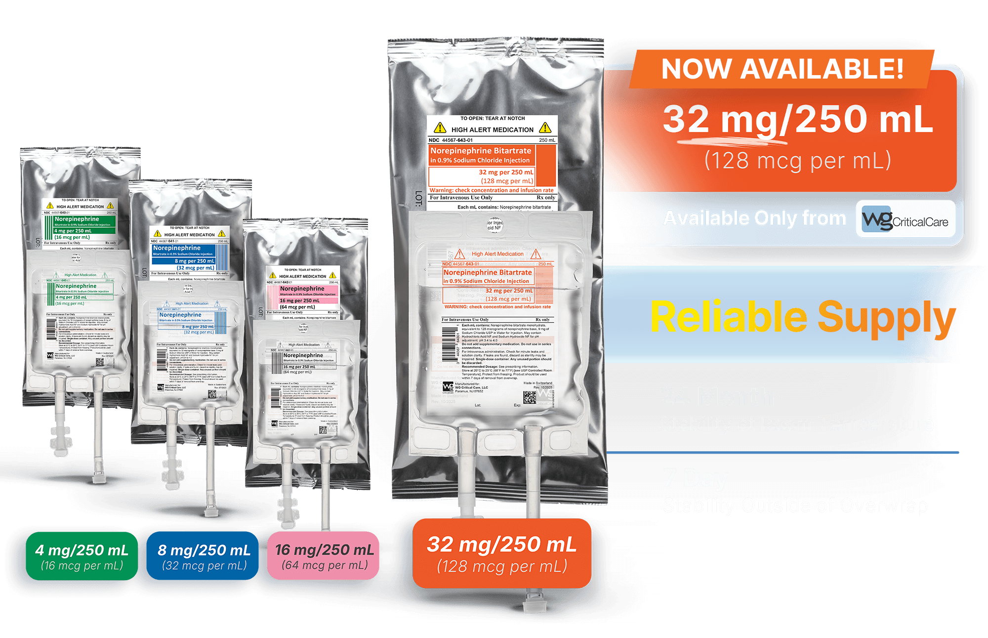 | 44567-643-10 | 32 mg/250 mL | 250 mL | 128 mcg/mL | 250 mL Premix Bag | 10 | 24 months | Bag Carton |